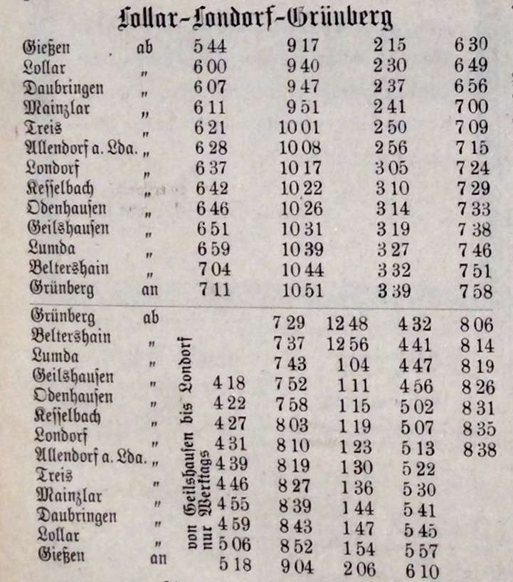 ↩︎ - Vgl. Bahnstrecke Grünberg–Lollar – Wikipedia, aufgerufen am 12. Oktober 2025.