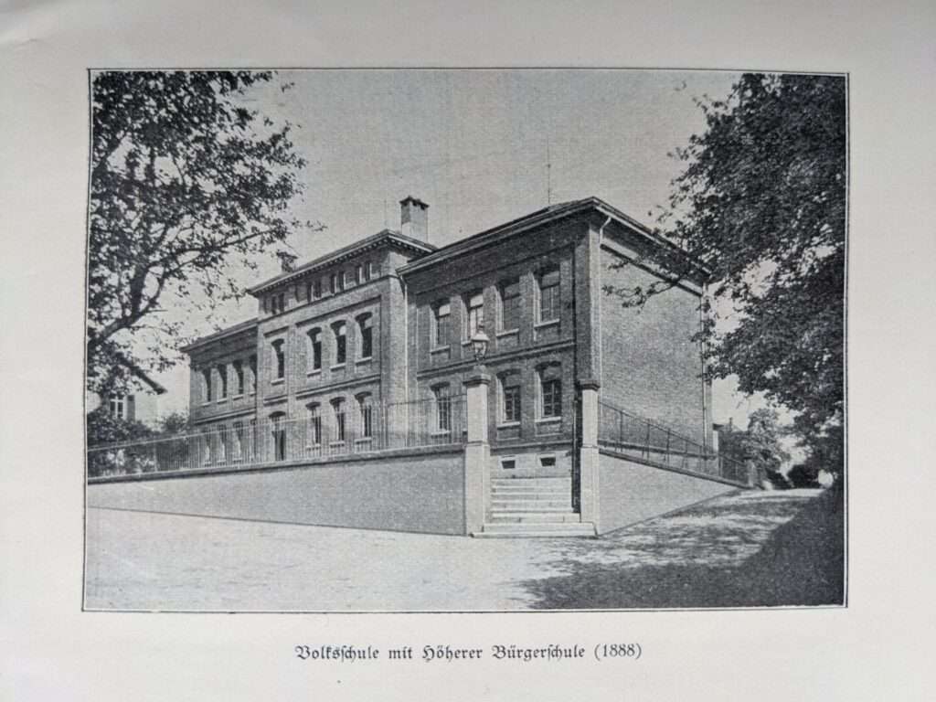 Leopolds Unterricht fand in dem 1888 errichteten Backsteingebäude an der heutigen Schulstraße statt, das die Kinder der Höheren Bürgerschule gemeinsam mit den höheren Klassen der Volksschule beherbergte.19 (Heute sind dort Klassenräume der Grundschule am Diebsturm.) Unterrichtet wurden die Kinder der Höheren Bürgerschule von drei Lehrern20 und zwei bzw. später drei Hilfslehrern.21 Bei den Hilfslehrern handelte es sich um Lehrkräfte der Volksschule, die Turnen, Singen und Zeichnen unterrichteten, sowie den zweiten Stadtpfarrer,22 der den evangelischen Religionsunterricht erteilte.23