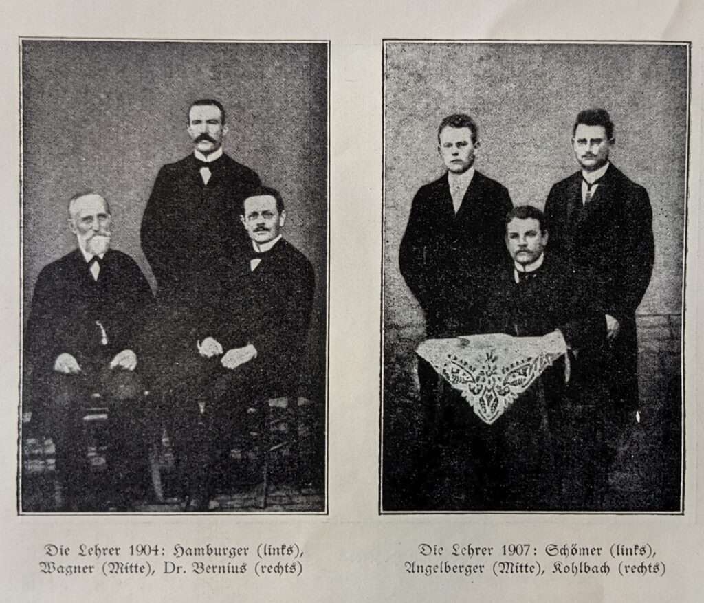 rechtes Foto, Mitte: W. Angelberger, Schulleiter von 1904 bis 1929; Festschrift 1926, S. IV (Archiv der Theo-Koch-Schule)