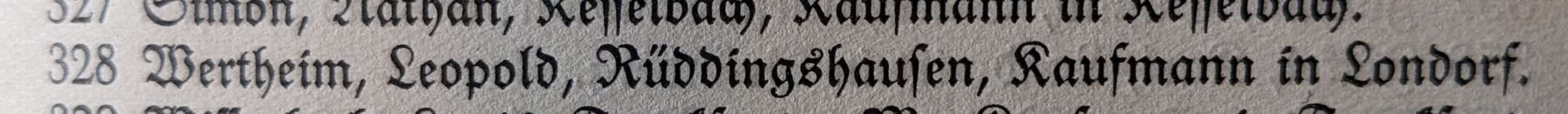 ↩︎ - Nach dem Gewerbetagebuch Rüddingshausen, angeführt bei Müller, Juden in Rabenau (a. a. O.), S. 161 (zu Rüd-310: Wertheim, Isaak).